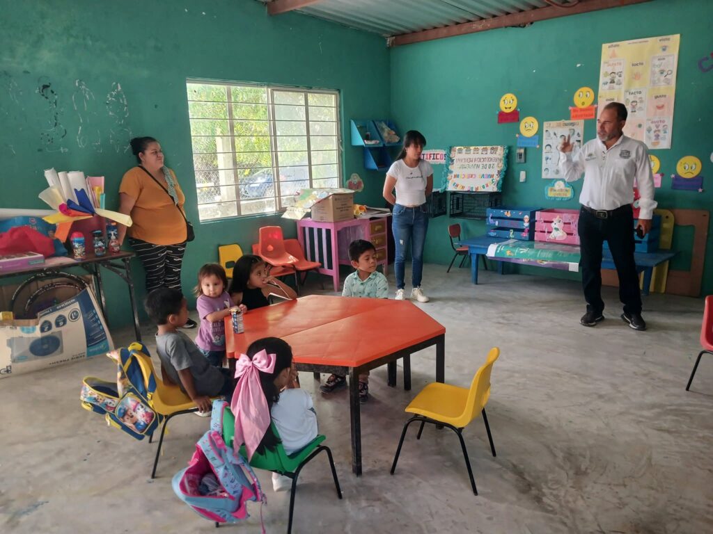Feliz y contento de poder ayudar con sus baños al jardín de niños Nueva Creación en El Nacimiento