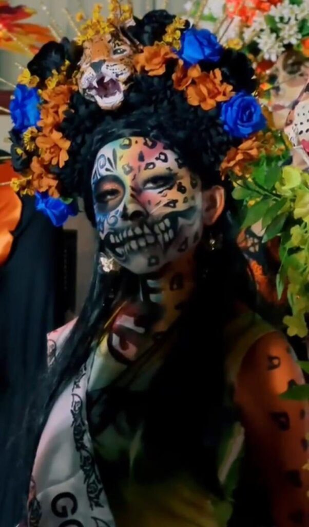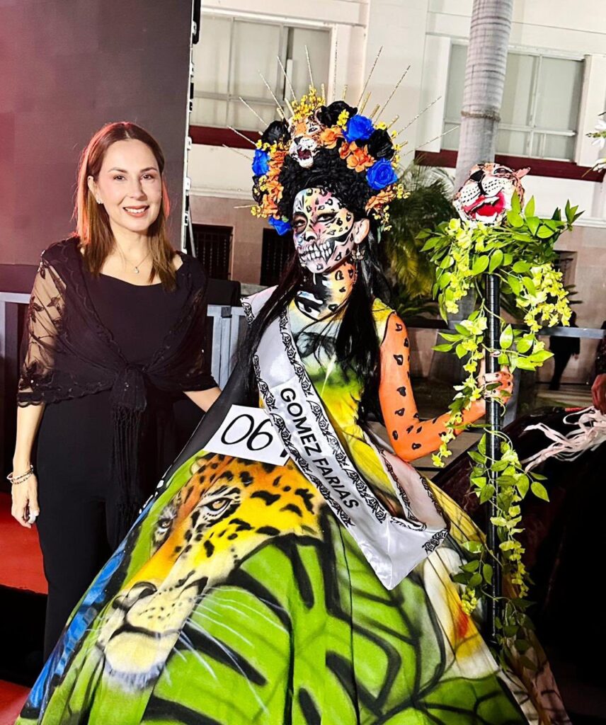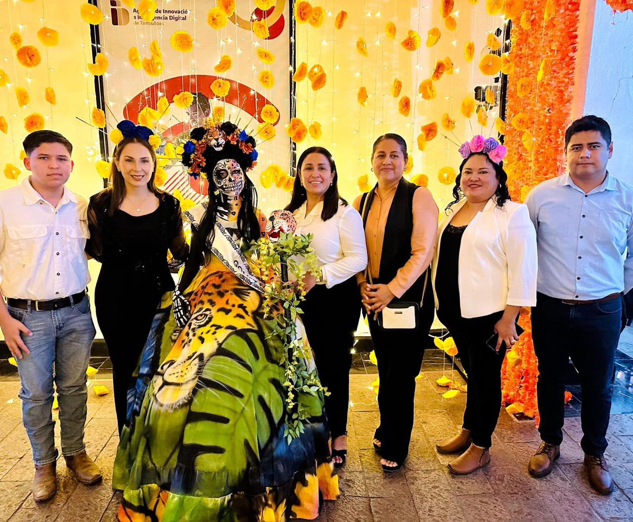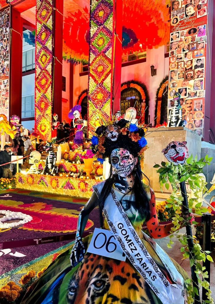 al presentar su catrina en el concurso “Almas Tamaulipecas»